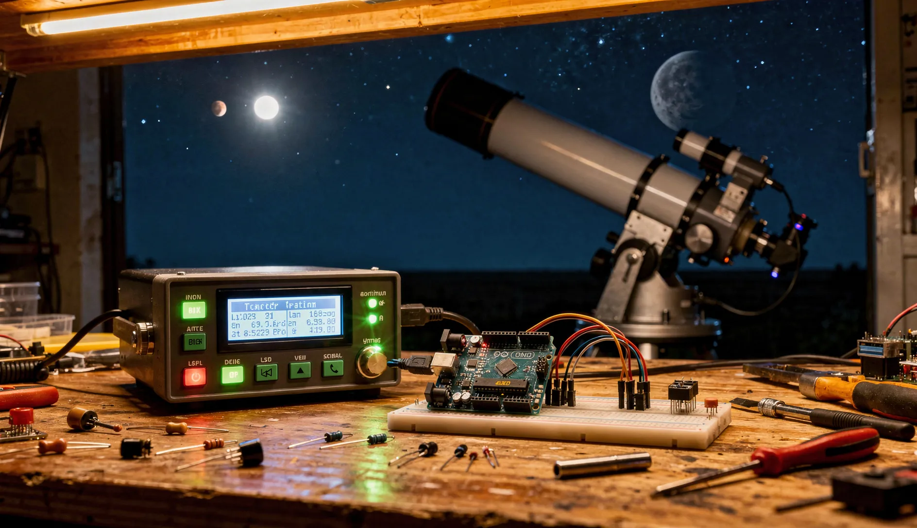 Le module RTC DS3231 (8€) est absolument crucial : il maintient l’heure précise même hors tension, indispensable pour calculer la position des astres ! Enfin, prévoyez une alimentation 12V 3A (18€) et un boîtier étanche (15€) pour protéger l’électronique de l’humidité nocturne.